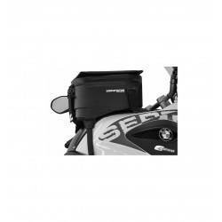 Graças à nossa tecnologia patenteada de volume expansível, o volume do saco de depósito é continuamente ajustável entre 7 e 12 litros. Para expandir a bolsa do saco, simplesmente solte as quatro tiras de velcro e puxe a parte externa para cima. Para reduzir o volume, simplesmente puxe as correias até que o volume necessário seja atingido. Na nossa opinião, uma solução simples e muito confortável. As paredes laterais são endurecidas e uma membrana impermeável entre as partes deslizantes evita a entrada de água e pó.